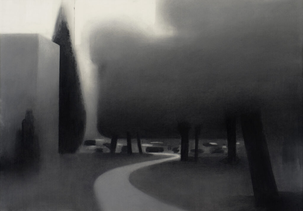 A park in Čakovec, 2022, charcoal on paper, 70×100 cm